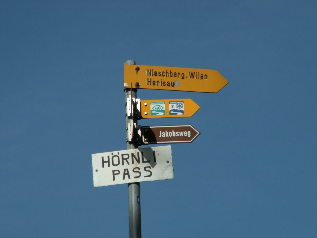 Wegweiser auf dem Hörnlipass