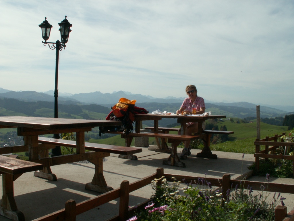 Breitbildfoto vom Bergrestaurant Sitz aus gesehen