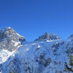 mächtig erhebt sich am Horizont der Titlis. Rechts unten die Alp Siedlung Hinter Fürren