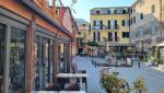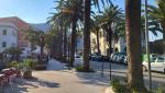 bei der Strandpromenade von Levanto blicken wir zurück zum Hügel, von wo wir gekommen sind