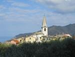 von hier oben erkennen wir die Kirche von Lemeglio und dahinter Moneglia