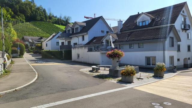 an schönen Gärten vorbei, verlassen wir das Dorfzentrum von Stäfa Datum 02.10.2024