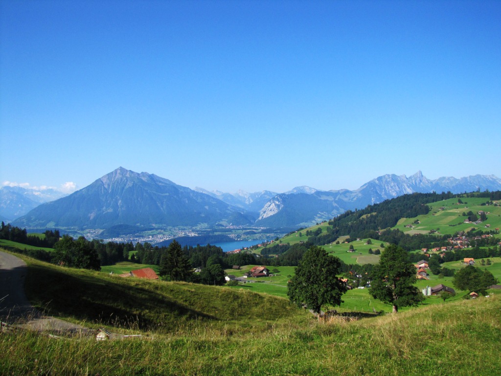 Blick ins Justistal, Thunersee und Niesen Datum 29.03.2013