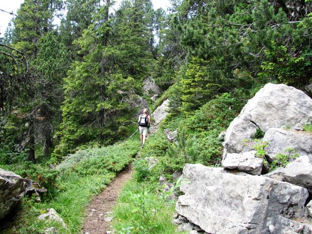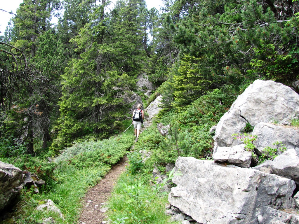 bei Punkt 1834 m.ü.M. geht es durch einen kleinen Lärchenwald Datum 29.03.2013