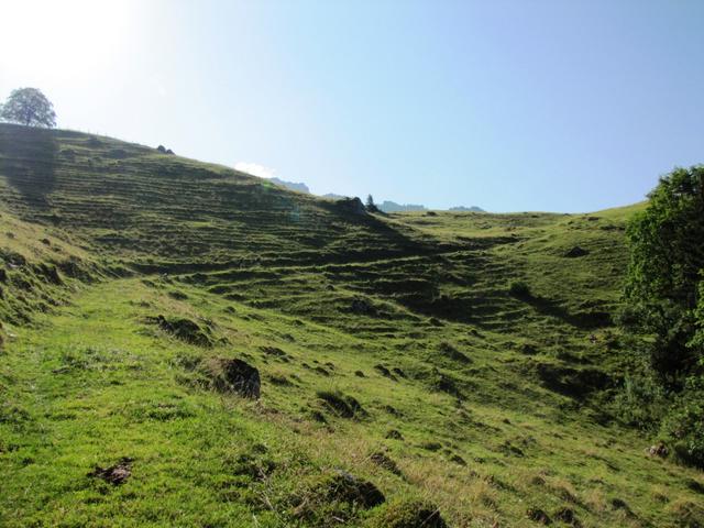 über einen Wiesenhang ansteigend geht es nun nach Oberbärgli Datum 25.03.2013