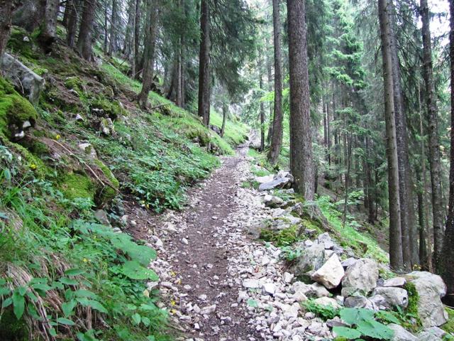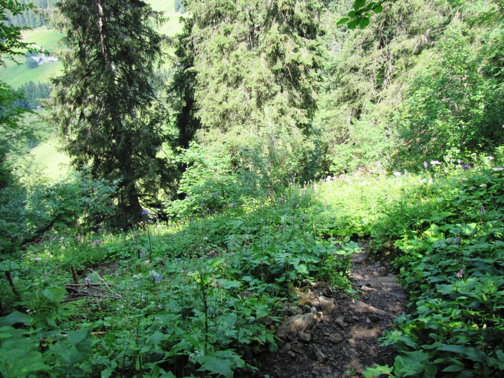durch einen abschüssigen und teilweise bewaldeten Hang geht es danach abwärts. Bei Nässe sumpfig und rutschig Datum 29.03.2013