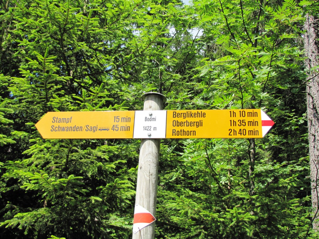 Wegweiser bei Berglichäle 1720 m.ü.M. hier bogen wir rechts ab Richtung Bodmi Datum 29.03.2013