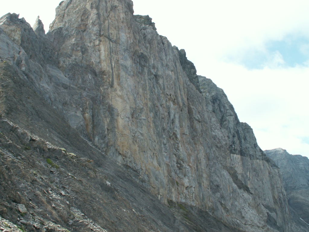sehr gut ersichtlich die horizontale Schicht von Lochseitenkalk. Das Gleitmittel für die Plattenverschiebung