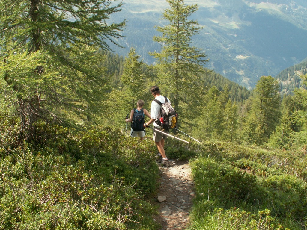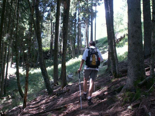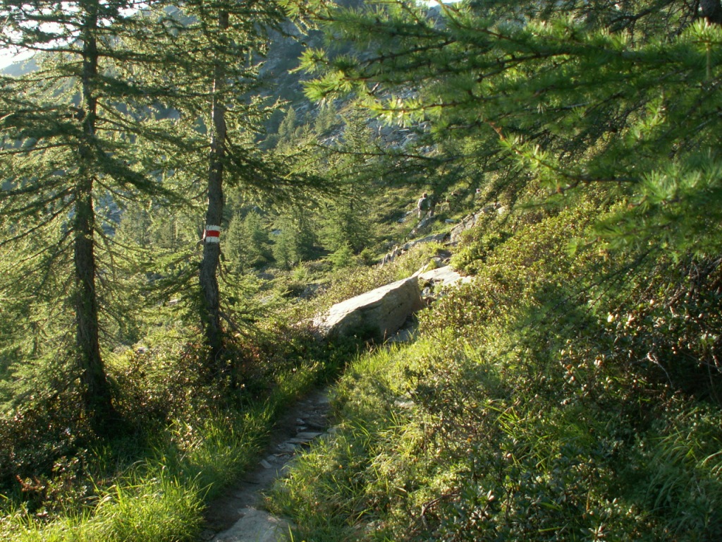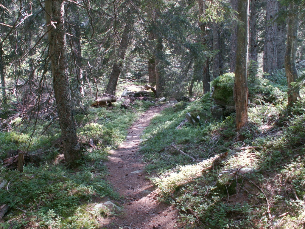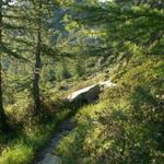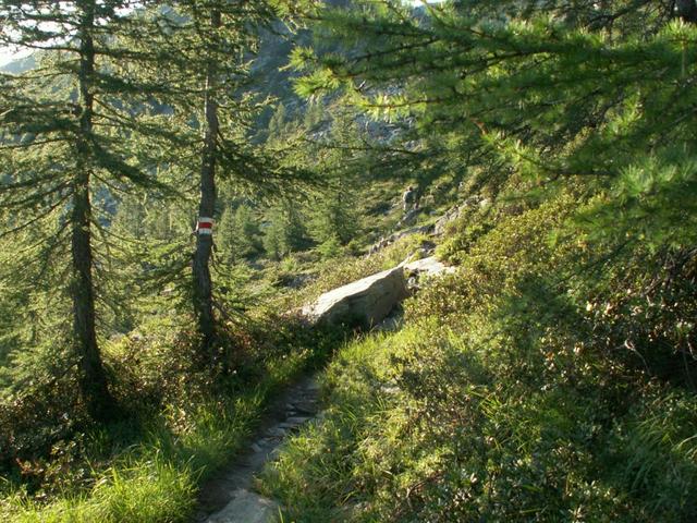 durch Wälder mit sehr alten Lärchen geht es Richtung Alp di Fora