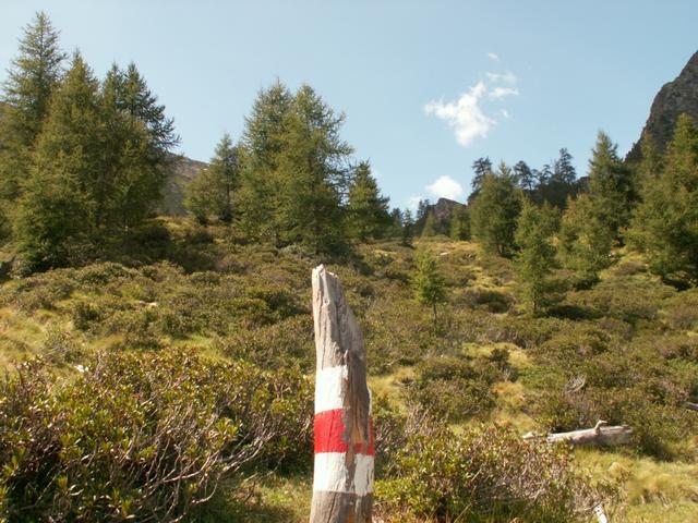 gut ersichtlich der Wanderweg der einem zum Pass de Buffalora bringt