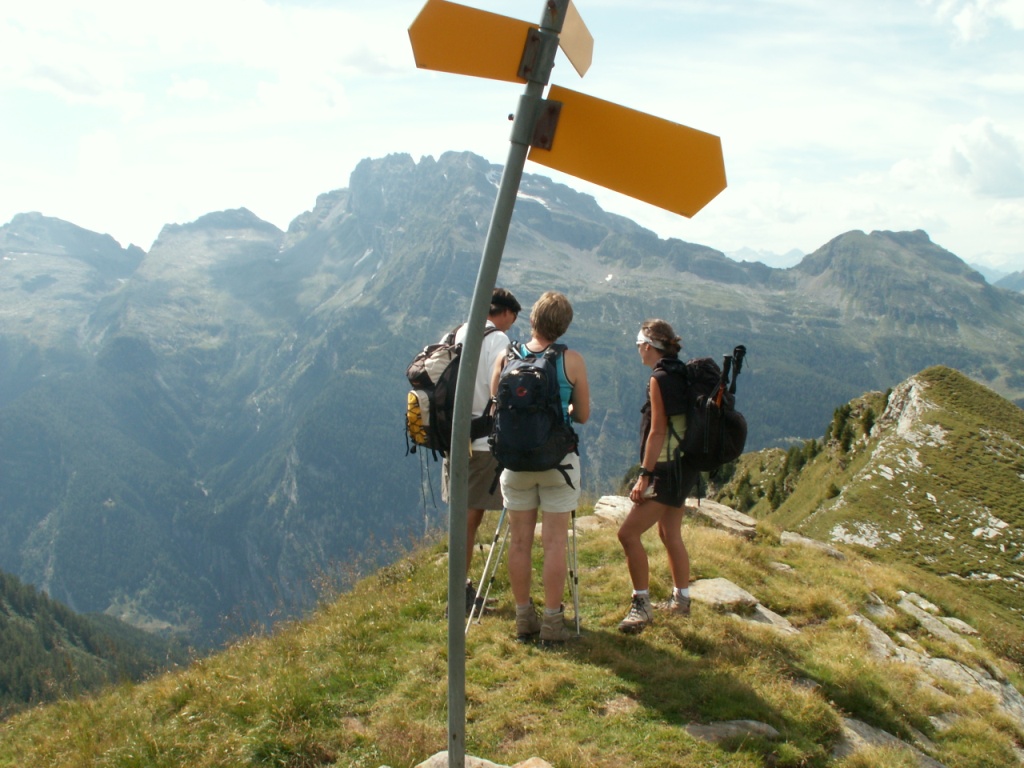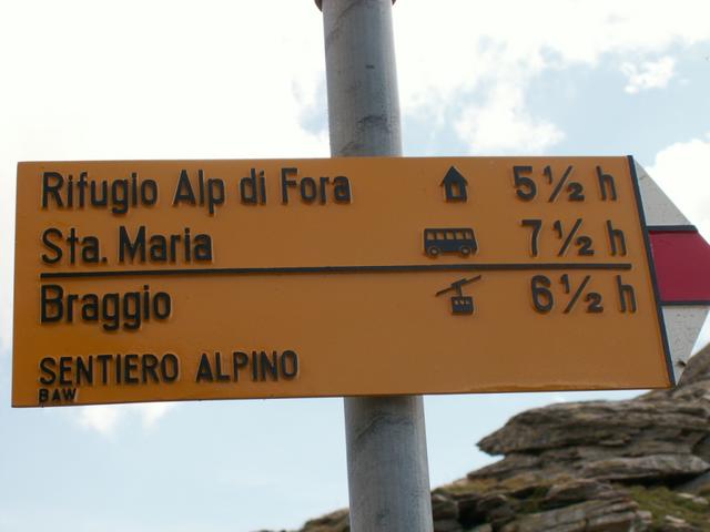 Wegweiser beim Motta del Perdül 2003 m.ü.M. Hier könnte man nach Selma runterlaufen