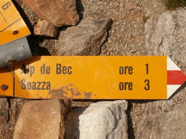 Wegweiser bei Alpe de Bec sot
