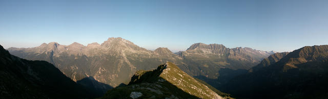 Breitbildfoto vom Mottone 2100 m.ü.M. aus gesehen Richtung Calancatal