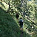 der Weg führt uns durch einen schönen Lärchenwald