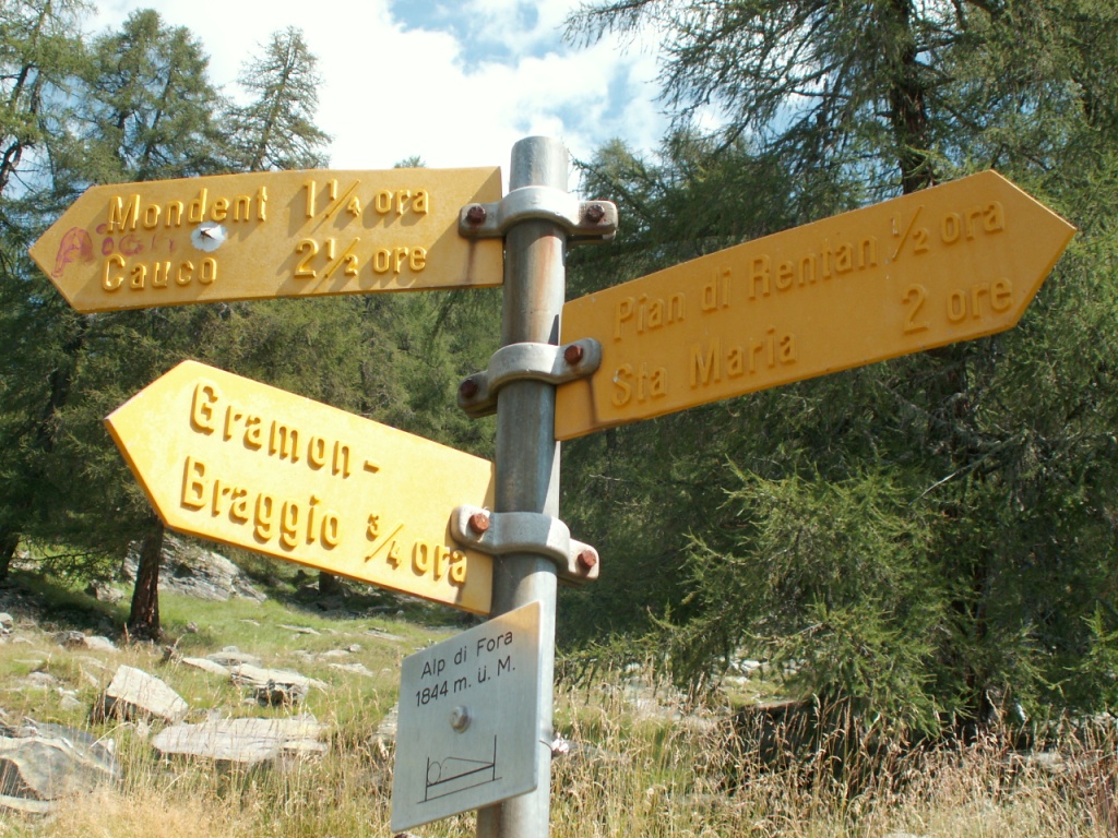 Wegweiser bei der Alp di Fora