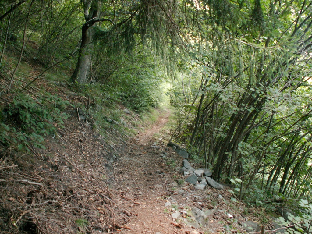 steiler Waldweg aufwärts Richtung Alpe de Bec sot