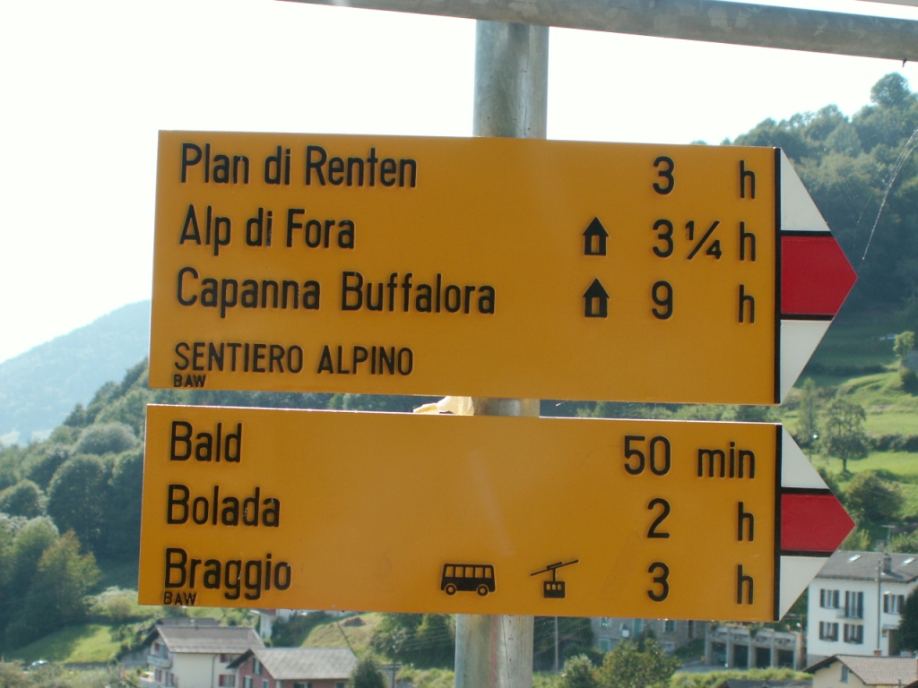 Wegweiser bei Soazza 660 m.ü.M.