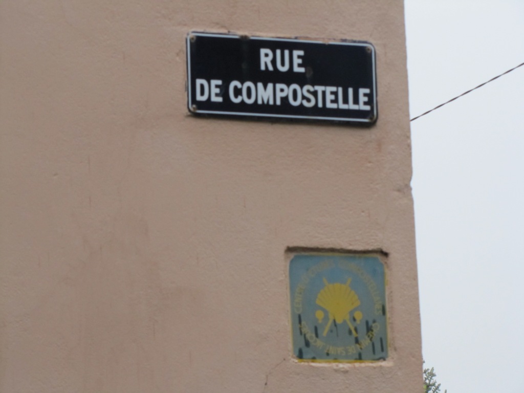 Mäusi liest die Hinweistafeln über den Chemin de Compostelle Datum 01.06.2010