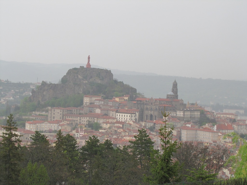 Blick zurück nach Le Puy. Links die Marienstatue. Rechts die Kathedrale Datum 01.06.2010