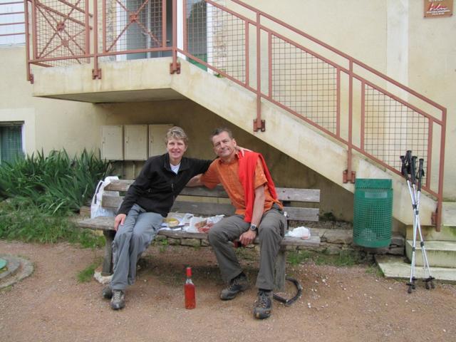 Breitbildfoto. MIttagessen mit anderen Pilger in Limogne en Quercy