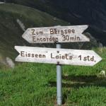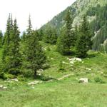 hier endet die Alpstrasse. Ein gut angelegter Wanderweg führt uns weiter aufwärts