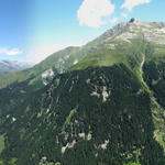 Breitbildfoto. Blick von der Camona da Medel Richtung Val Plattas. Der Nebel ist weg