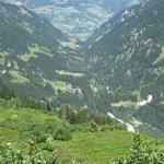 tief unter uns der Talboden des Val Lavax