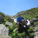Franco geniesst die Kühle in der Nähe des Baches. Je tiefer wir runtergehen, je wärmer wird es