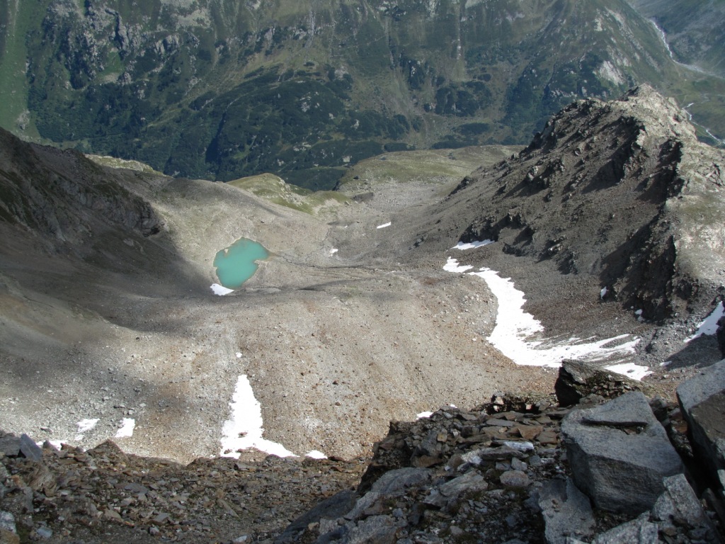 Blick runter nach Verborgen Pischa mit den schönen Bergseelein Datum 28.09.2010