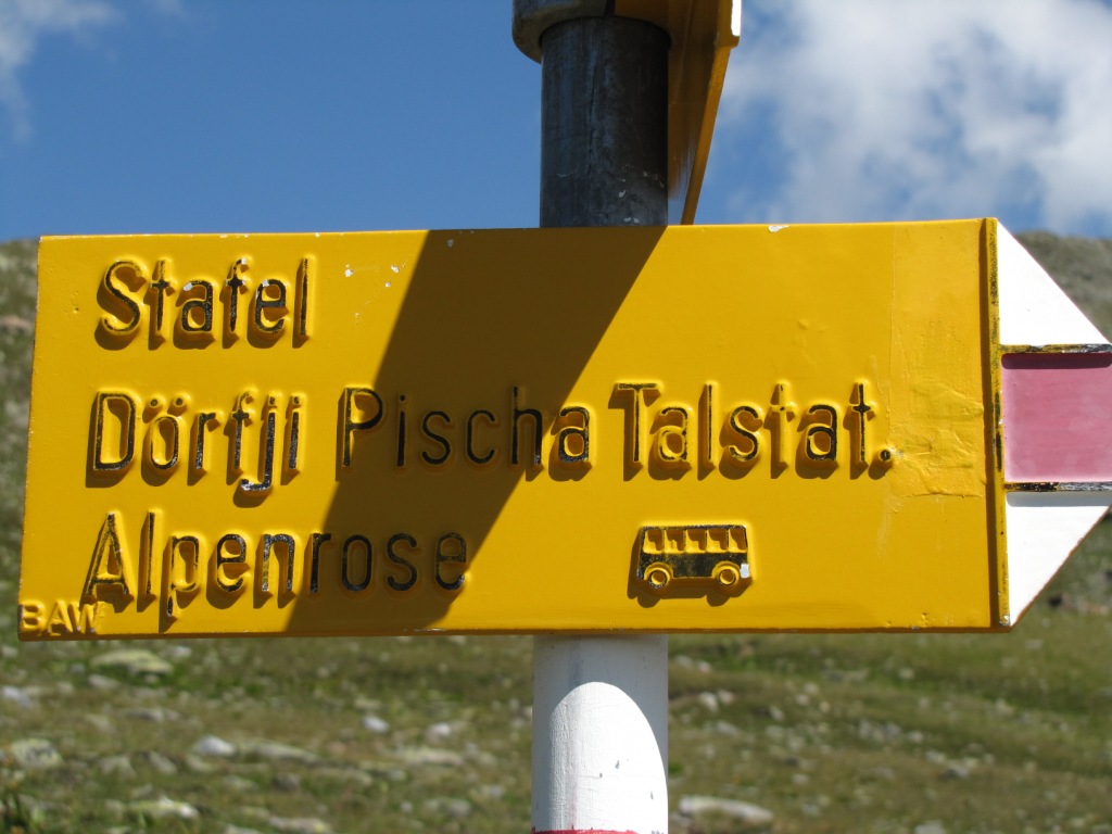 Wegweiser auf dem Pischgrat. Hier wird der Pischahorn gar nicht erwähnt! Datum 01.10.2010