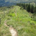 am Grat entlang, bis zu den Föhren, wird unser weiterer Wegverlauf sein