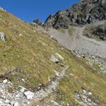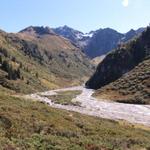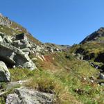 auf der orographisch linken Seite vom Seebach führt der einfache Wanderweg abwärts zur Alp Sardasca Datum 17.10.2015
