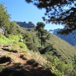 auf der orographisch linken Seite vom Seebach führt der einfache Wanderweg abwärts zur Alp Sardasca