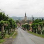 wir haben die Kirche von Lelin-Lapoujolle erreicht. Der Kirchturm mit draussen hängenden Glocken