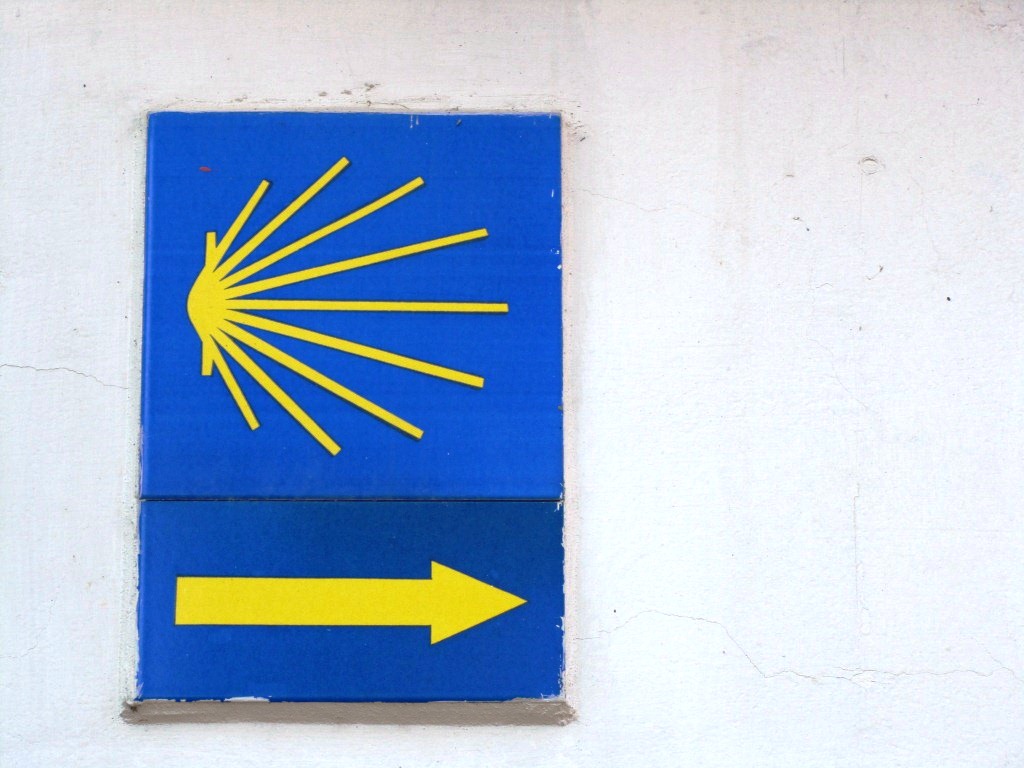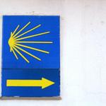 diese Markierung, Gelber Pfeil und Muschel wird uns nun bis Santiago de Compostela begleiten Datum 13.07.2011