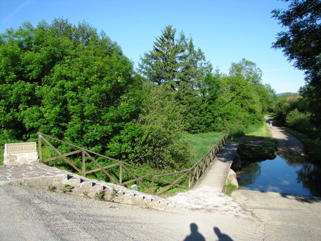 wir haben Zubiri mit der Brücke Puente de la Rabia, Brücke der Tollwut erreicht. Datum 13.07.2011