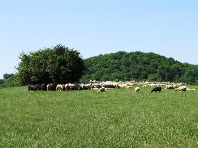 sogar die Schafe suchen Schatten. Es ist noch nicht Mittag und die Sonne brennt schon jetzt unbarmherzig Datum 13.07.2011