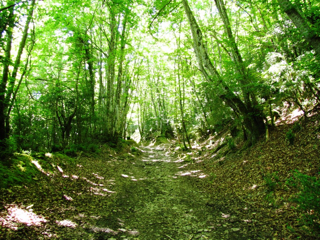 durch schattenspendenten Buchenwälder geht es weiter nach Bizkarreta-Gerendiain Datum 13.07.2011
