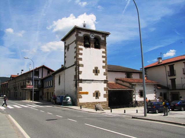 Kirchturm von Zubiri. Zubiri ist baskisch und bedeutet "Ort an der Brücke" Datum 13.07.2011