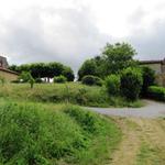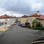 wir haben die Kirche verlassen und laufen bei Nieselregen in Miramont-Sensacq ein