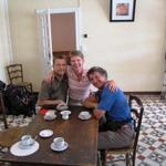 in einer kleinen Bäckerei wo man auch Kaffee trinken kann, beraten Elias und Franco den weiteren Wegverlauf