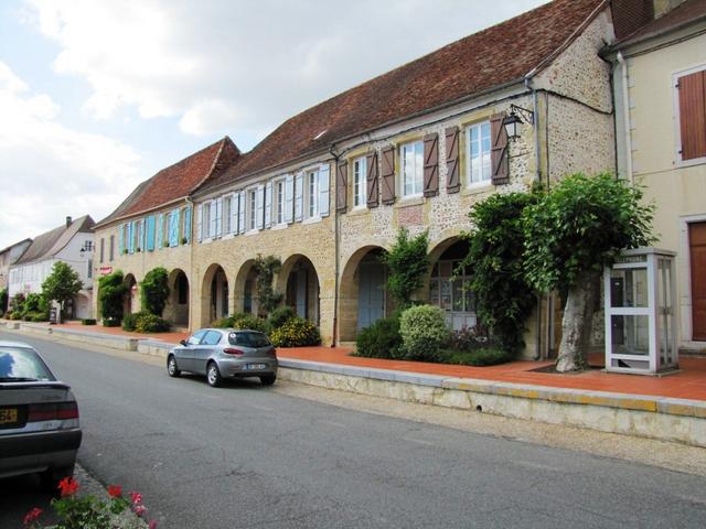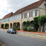 schmucke Arkadenhäuser säumen den Dorfplatz von Arzacq-Arraziguet