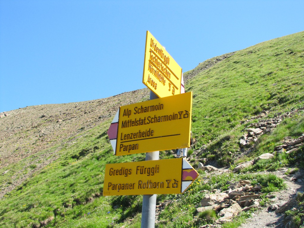 Wegweiser unterhalb Punkt 2559 m.ü.M. weiter geht es zum Gredigs Fürggli
