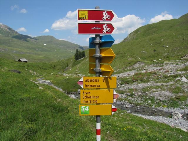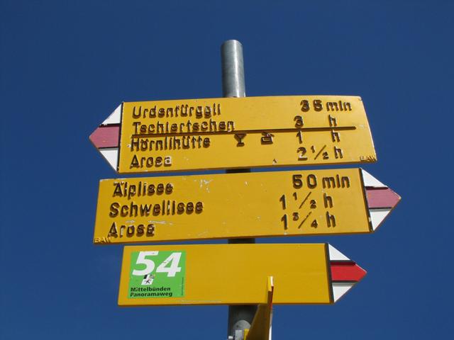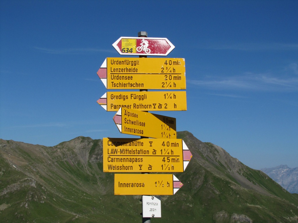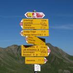 Wegweiser beim Gredigs Fürggli. Unser nächstes Ziel der Älplisee