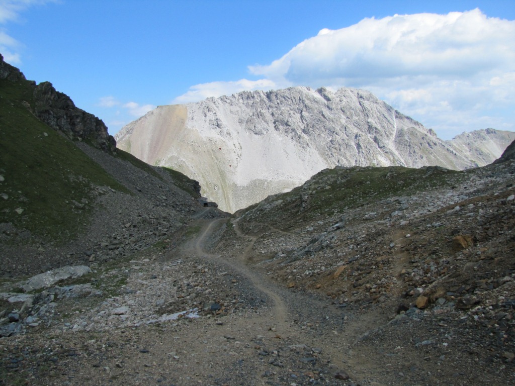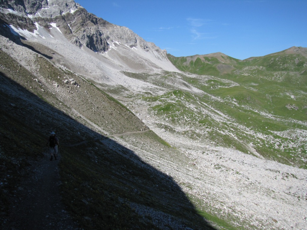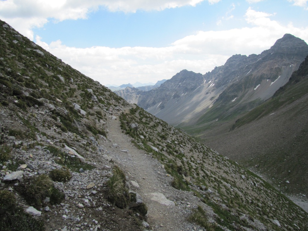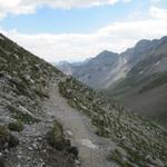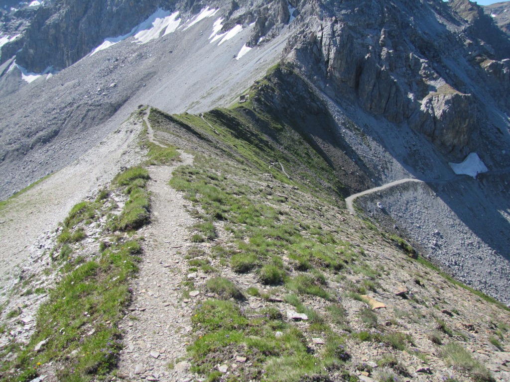 am steilen Berghang des Parpaner Weisshorn entlang geht es auf guten Weg abwärts