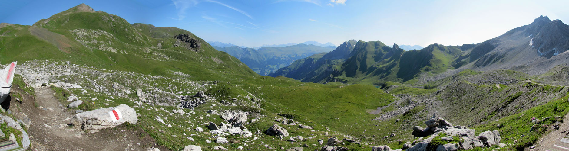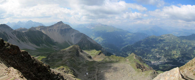 Breitbildfoto vom Parpaner Rothorn mit Blick Richtung Lenzer Horn