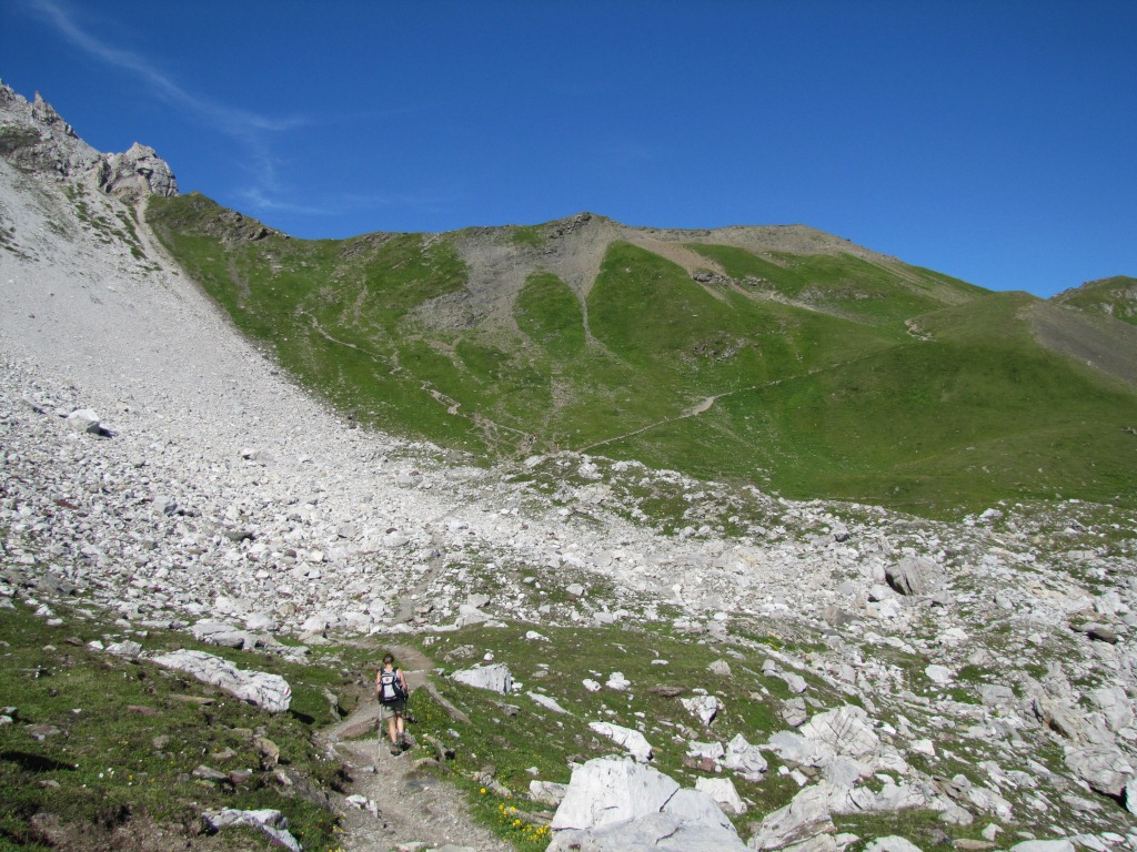 wir sind beim Gredigs Fürggli rechts abgebogen und wandern nun abwärts zum Älplisee