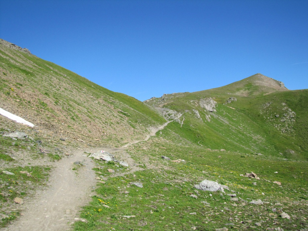 der Bergpfad der zum Urdenfürggli führt, ist sehr gut sichtbar