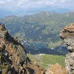 was für ein Tiefblick runter nach Lenzerheide mit Heidsee