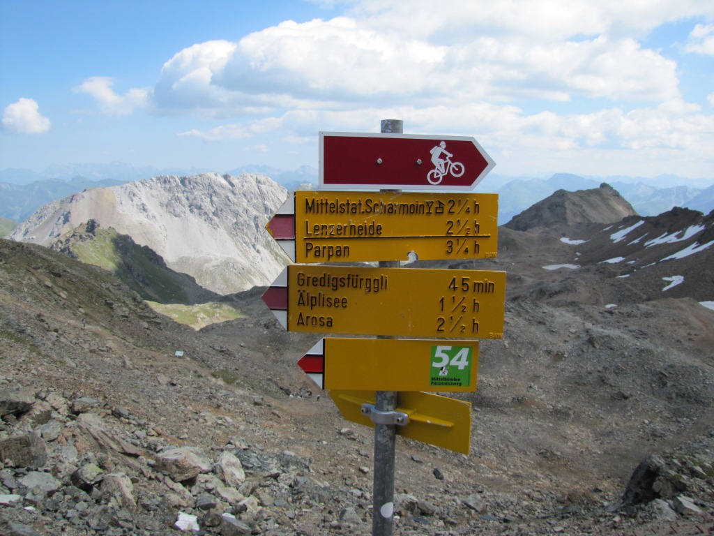 Wegweiser unterhalb Punkt 2559 m.ü.M. weiter geht es zum Gredigs Fürggli